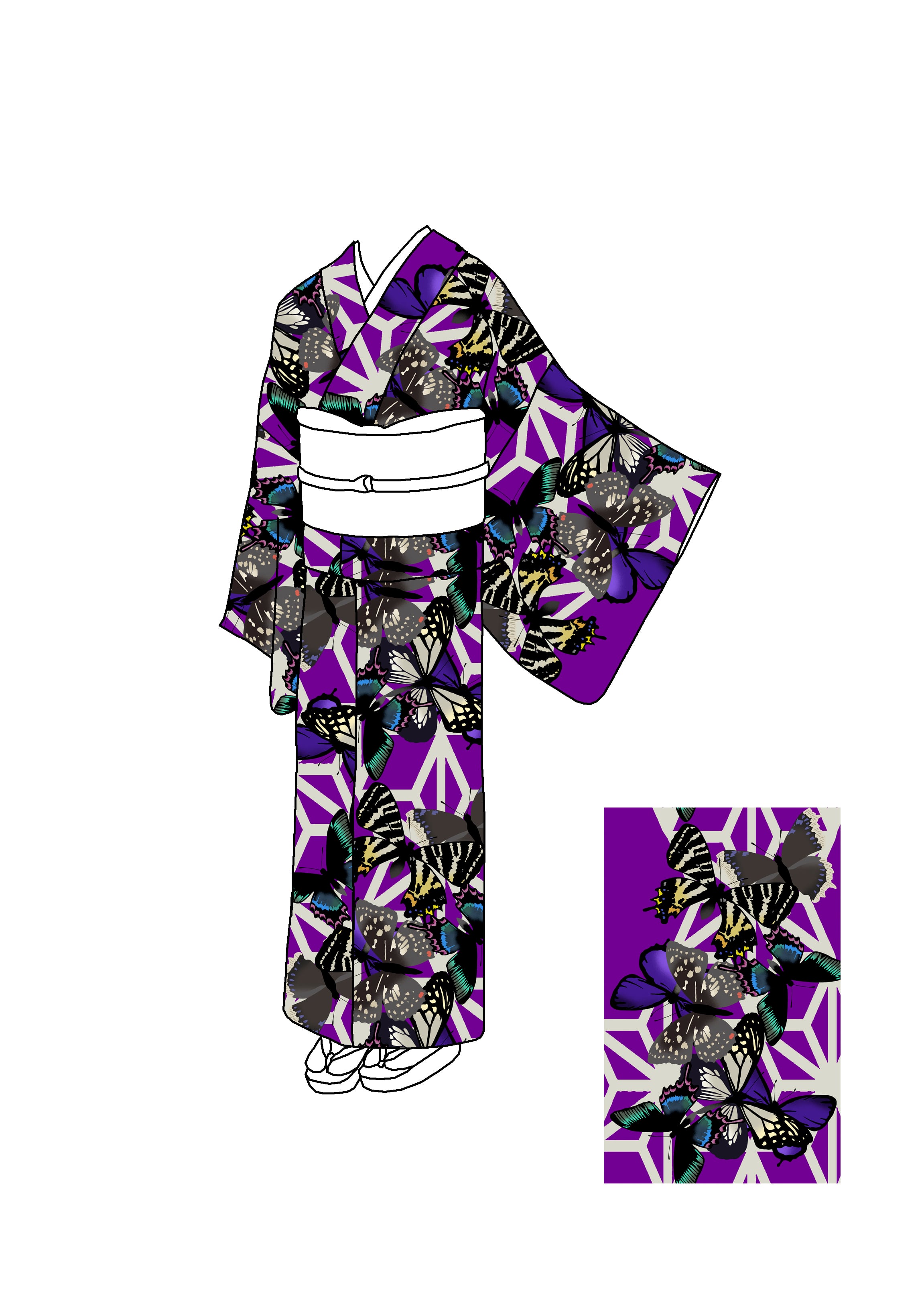 着物デザイナー・木越まりが手描きで描いた原画をもとに生まれた、オリジナルデザイン着物「岐阜蝶」。